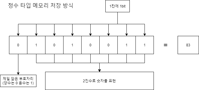 1byte(8bit)로 -128 ~ 127 까지 숫자를 저장할 수 있다.