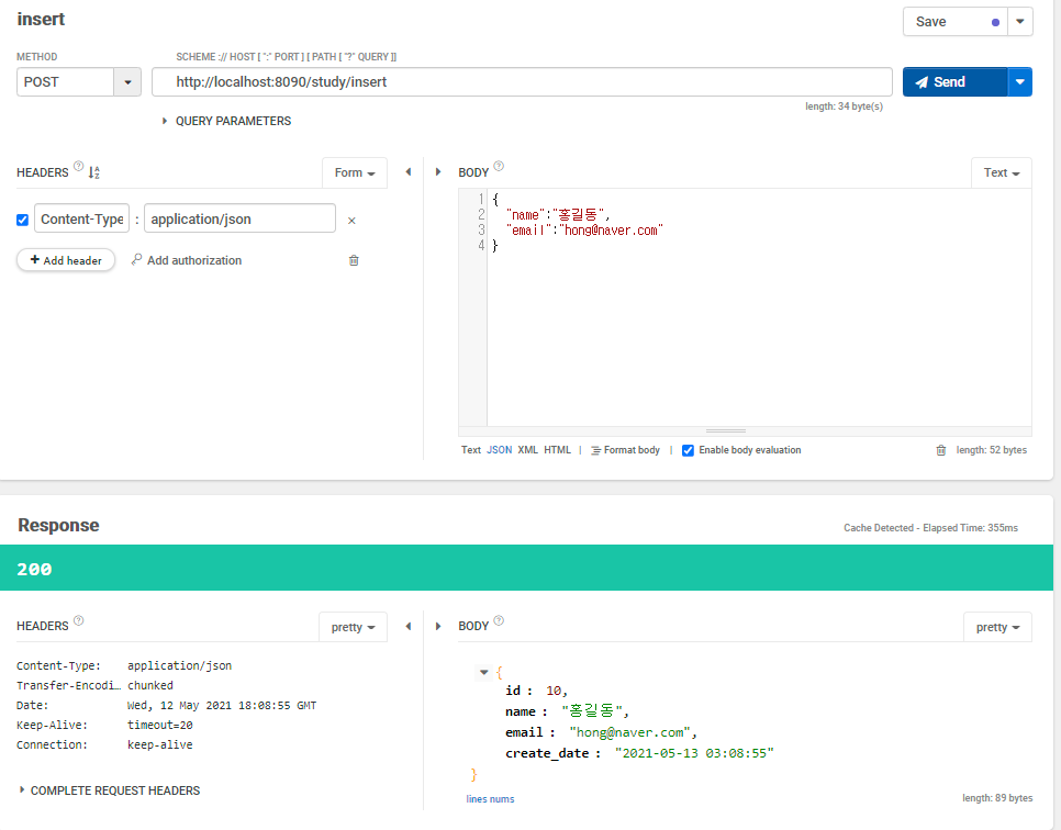 insert : 객체를 전달하여 테이블에 Insert한다.